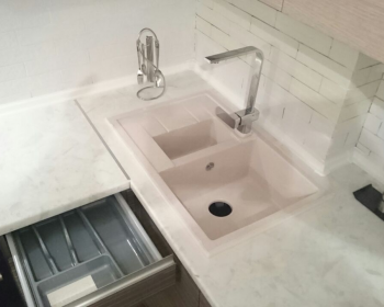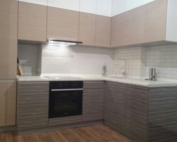 Фасады из МДФ под плёнкой и врезные ручки из алюминия