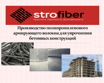 Наша компания предлагает к рассмотрению новинку на рынке стройматериалов - мАкрофибру Strofiber. Данный продукт используется для армирования бетона, заменяет стальную арматуру и помогает уменьшить стоимость армирования до 40%, при этом усиливая конструкцию. Продукт сертифицирован и прошёл все испытания.