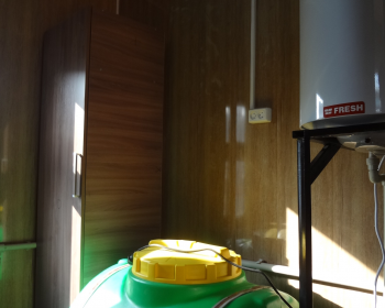 Оборудован отопительными системами, мебелью, устройствами сан гигиены, душем и прочим.
